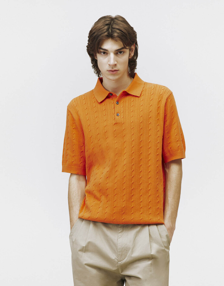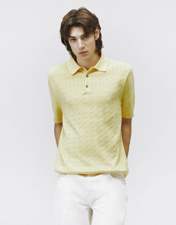 남자 립 스티치 폴로넥 반팔 니트 스웨터