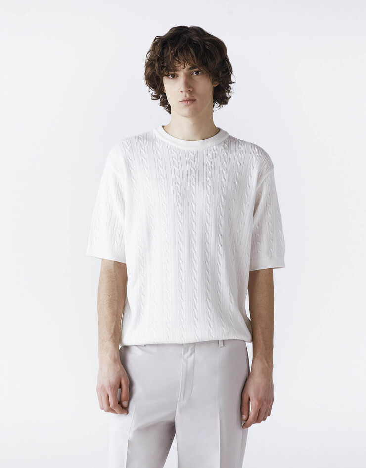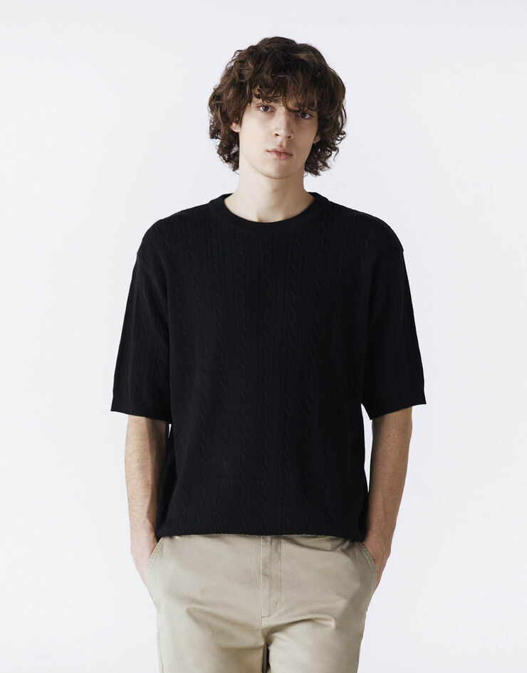 NEW 크로셰 텍스처 라운드넥 반팔 니트 스웨터 9GG