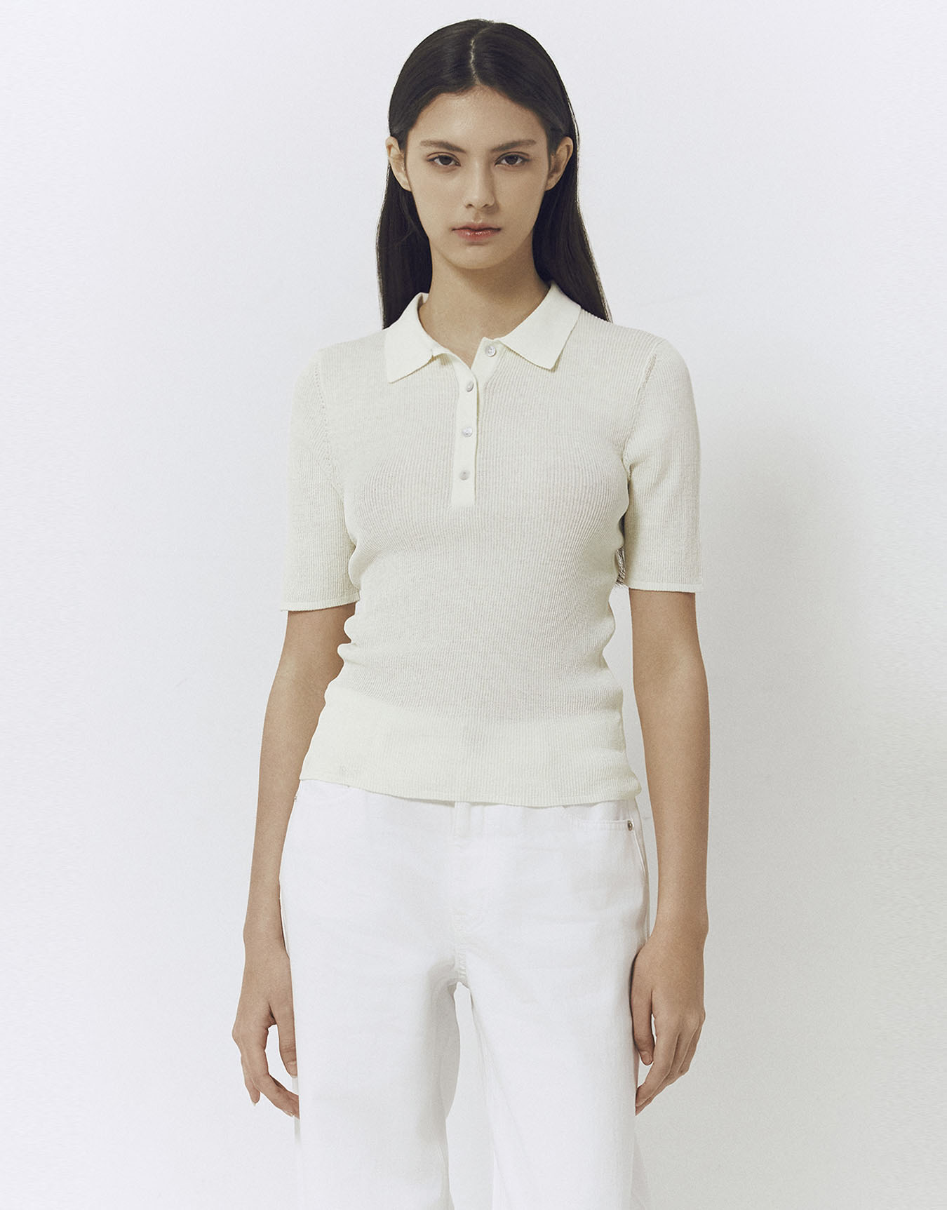 NEW 골지 폴로넥 반팔 니트 스웨터