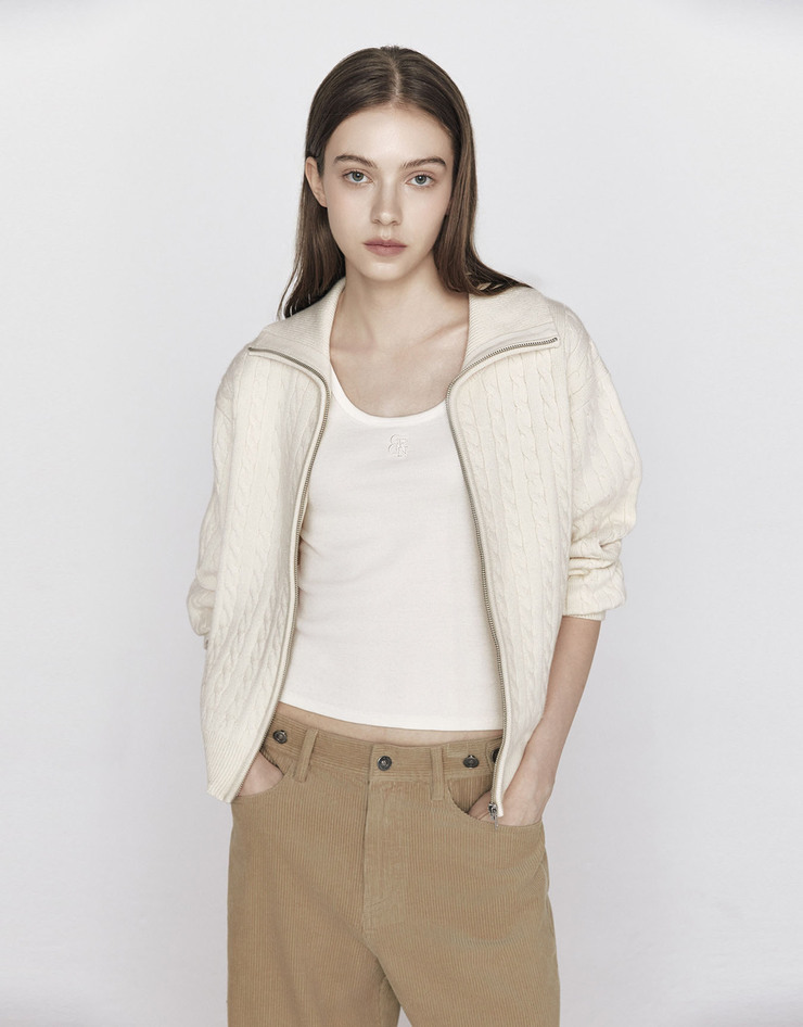 NEW 여자 케이블 빅카라 집업 긴팔 가디건 5GG