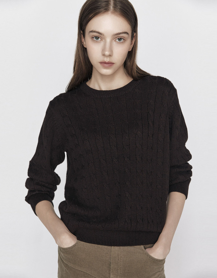NEW 여자 케이블 크루넥 긴팔 니트 스웨터 5GG