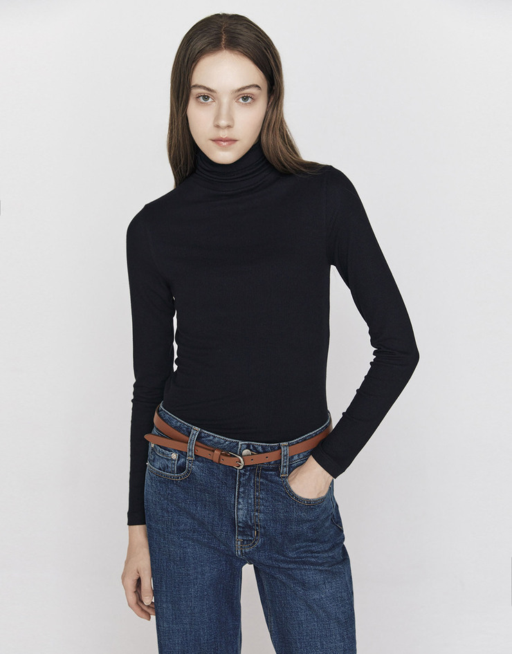 NEW 여자 립 터틀넥 긴팔 티셔츠