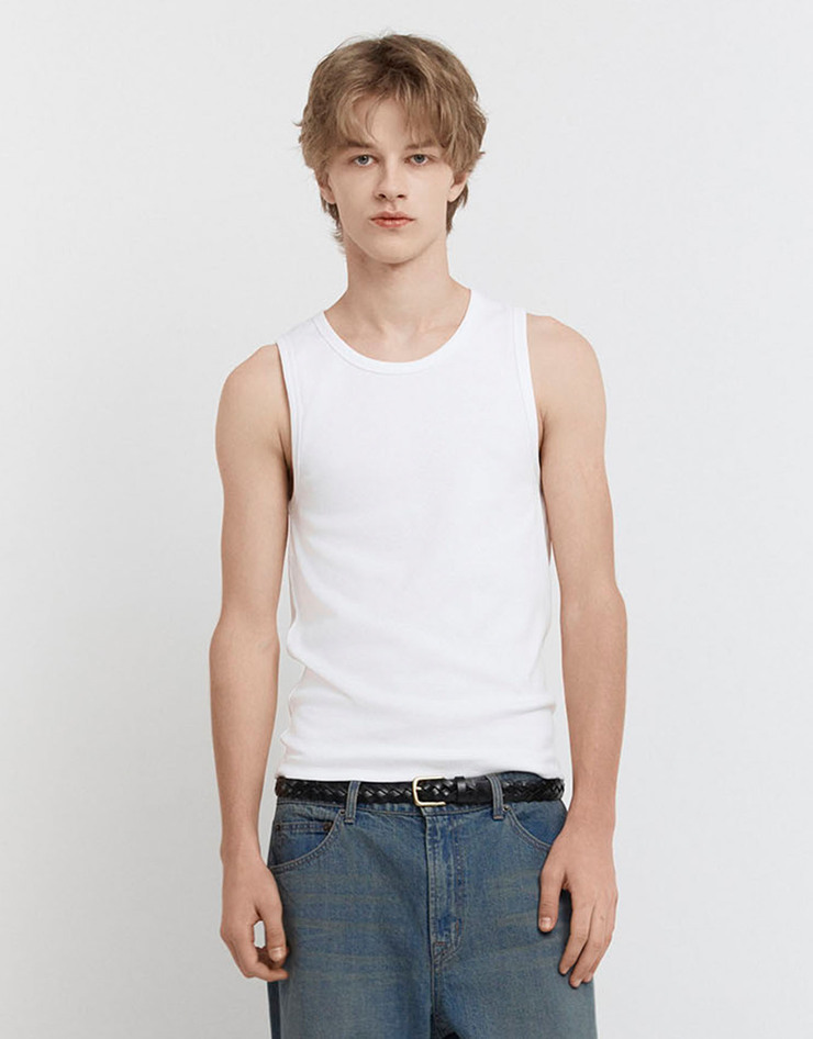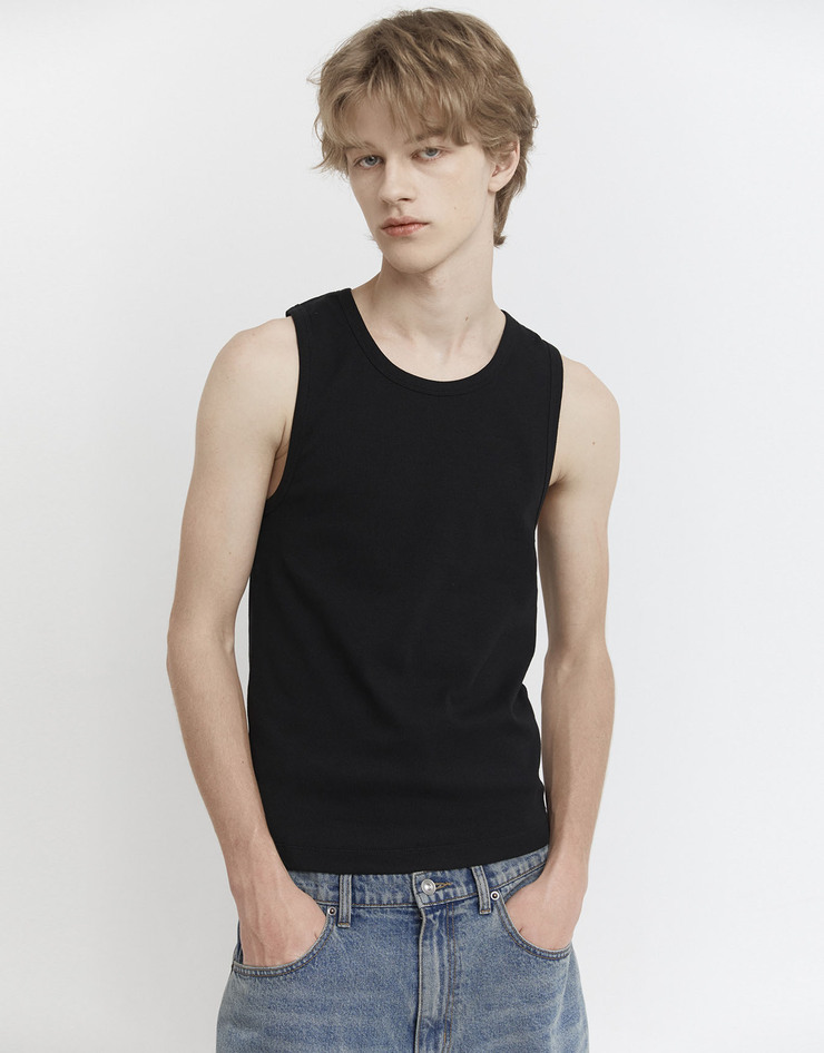 NEW 코튼 크루넥 슬리브리스 립 탱크탑