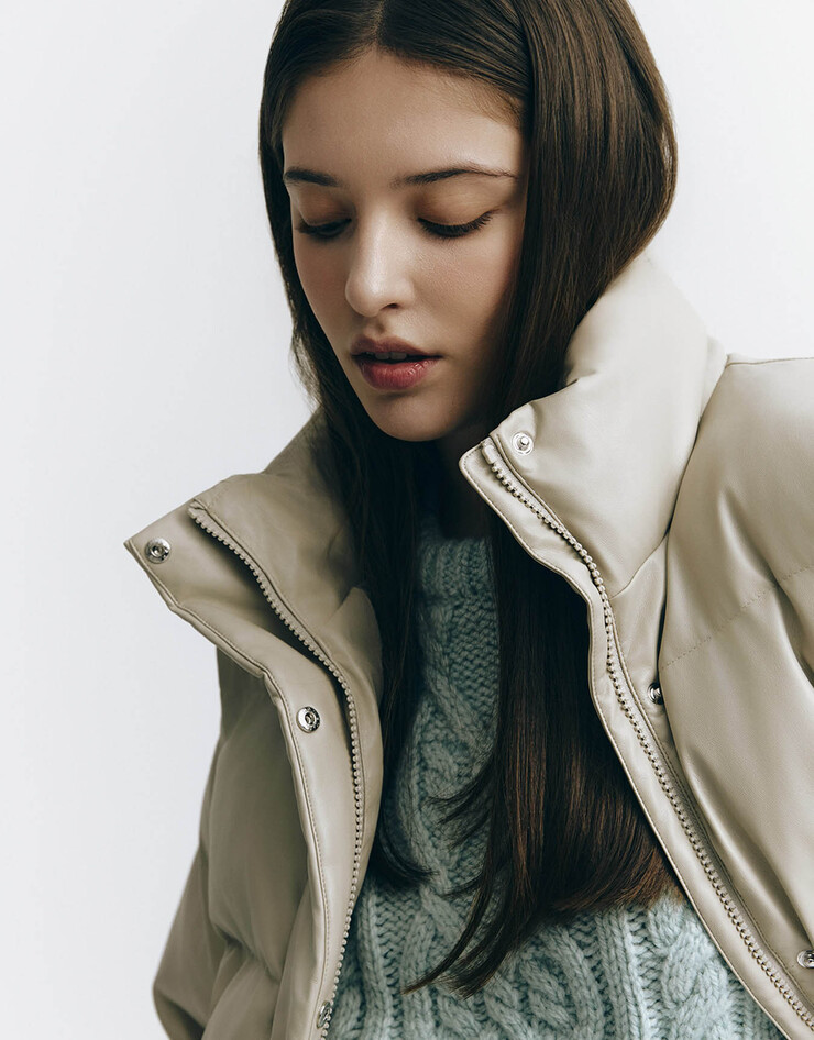 여자 덕다운 논퀼팅 패딩 후드 푸파