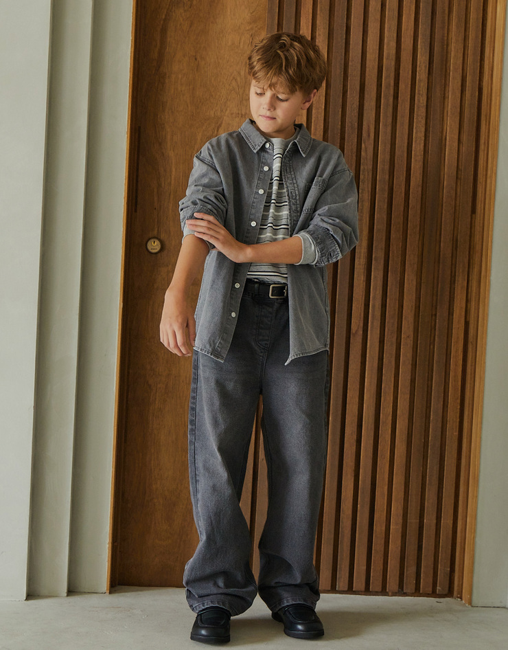 NEW 주니어 코튼 스판 와이드핏 기모 데님