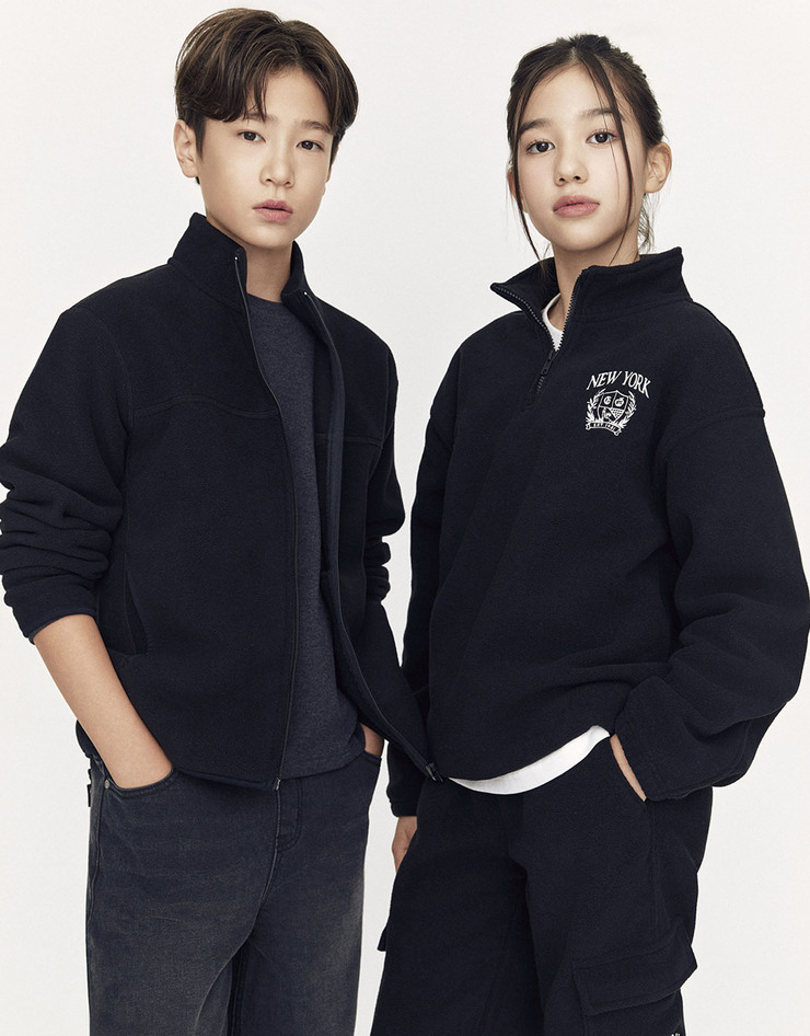 주니어 플리스 하프집 맨투맨