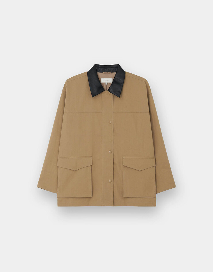 가죽카라 미드렝스(중기장) 코튼 워크 자켓