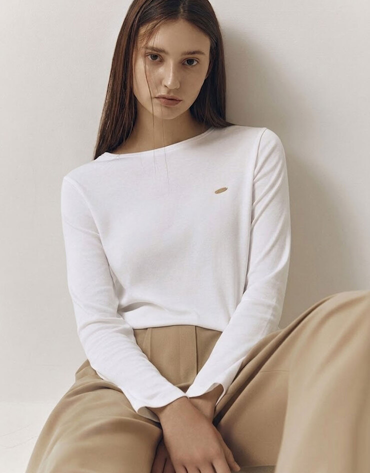 코튼 저지 스쿱넥 긴팔 티셔츠