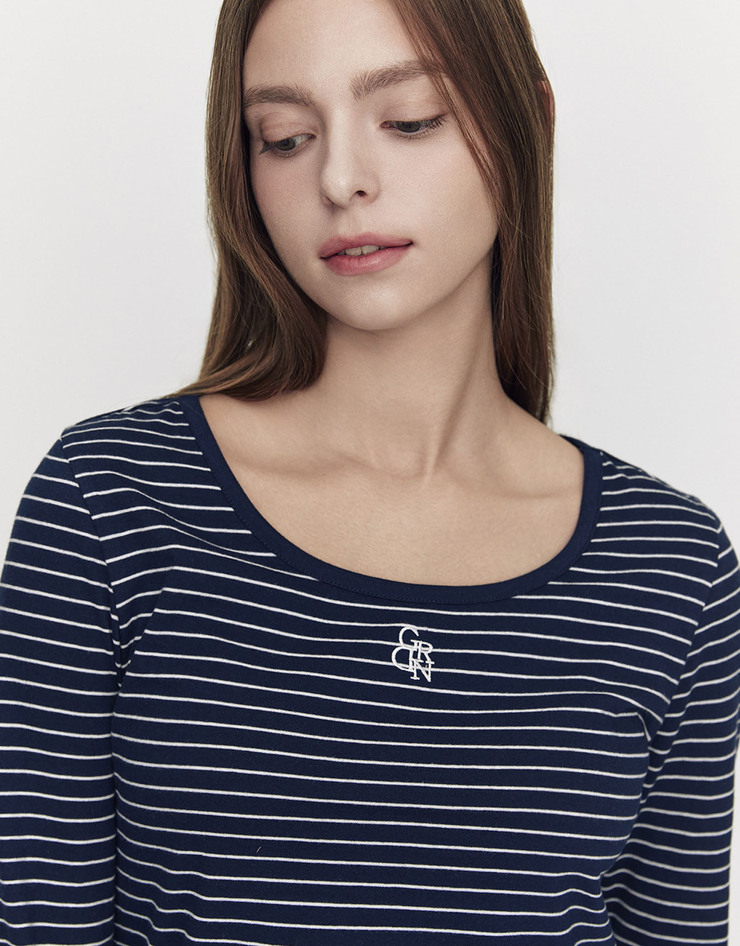 NEW 여자 스트라이프 라운드넥 긴팔 티셔츠