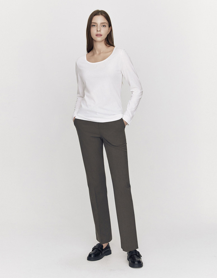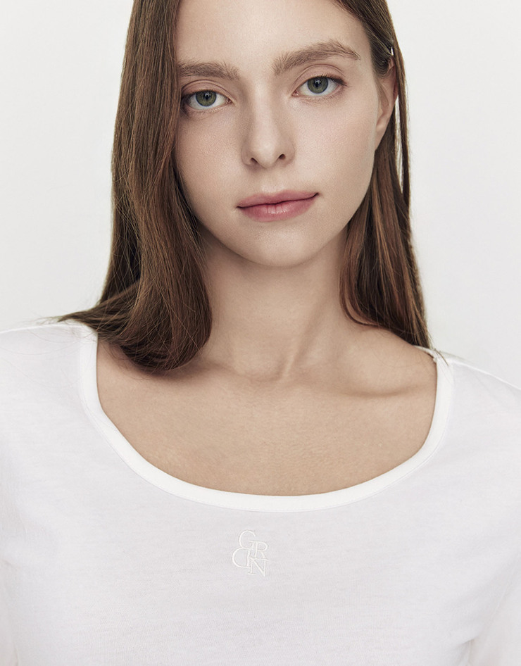 여자 코튼 저지 스쿱넥 긴팔 티셔츠