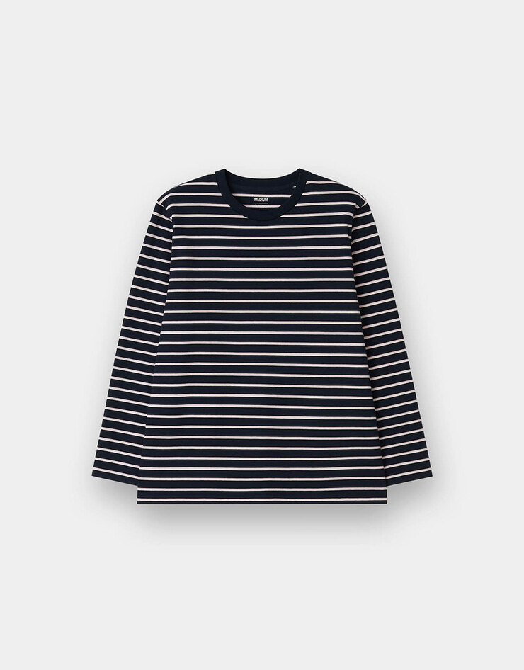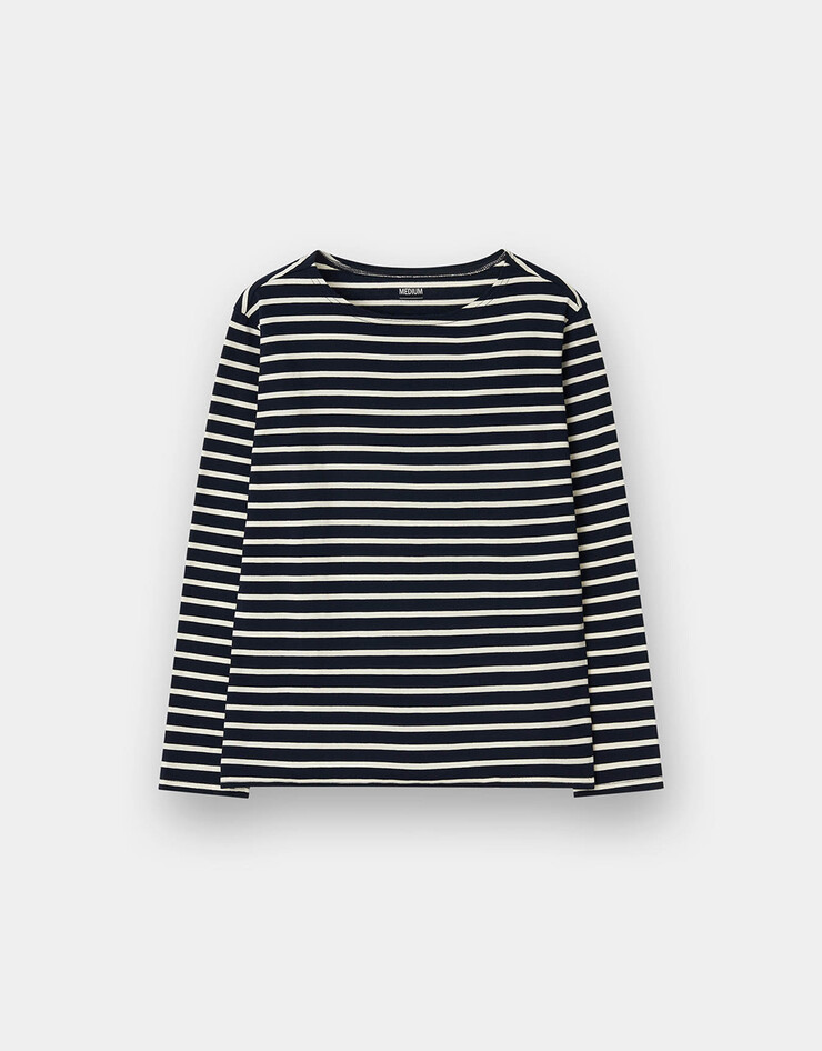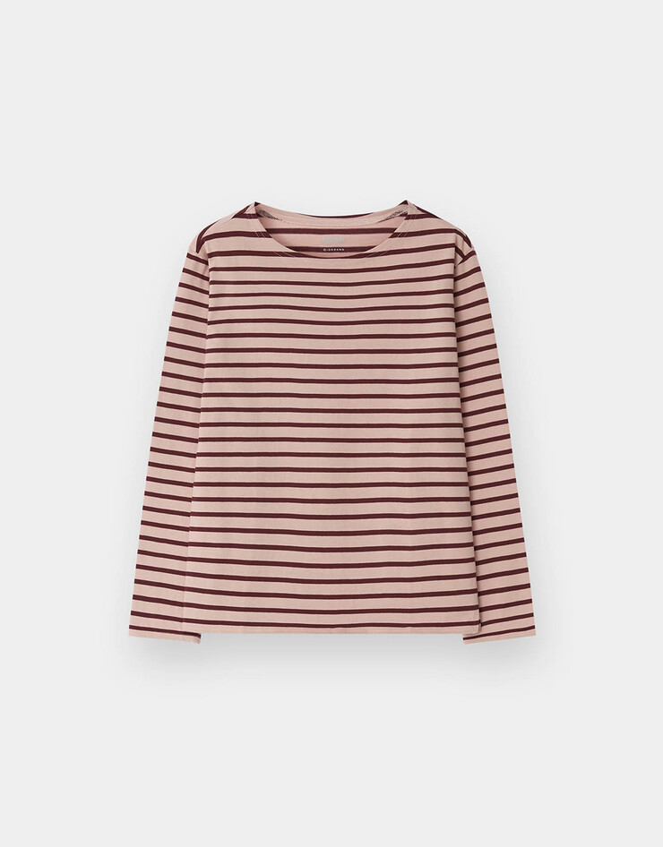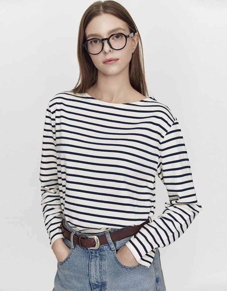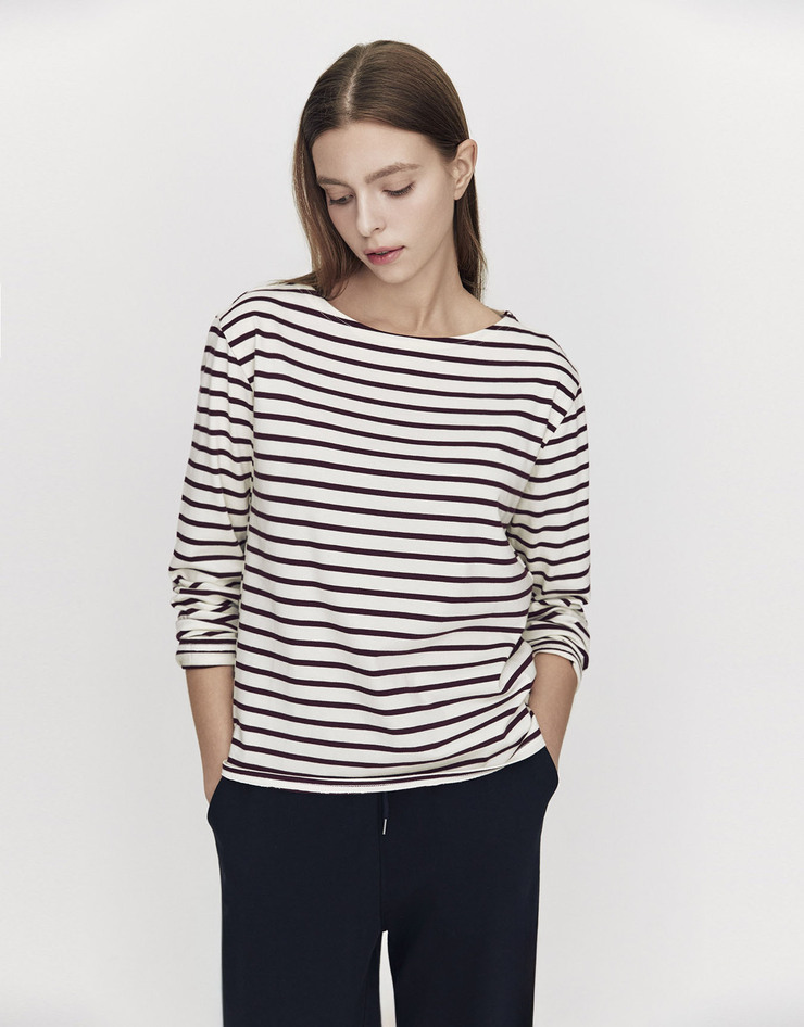 여자 스트라이프 보트넥 긴팔 티셔츠