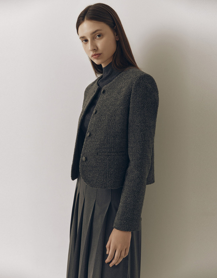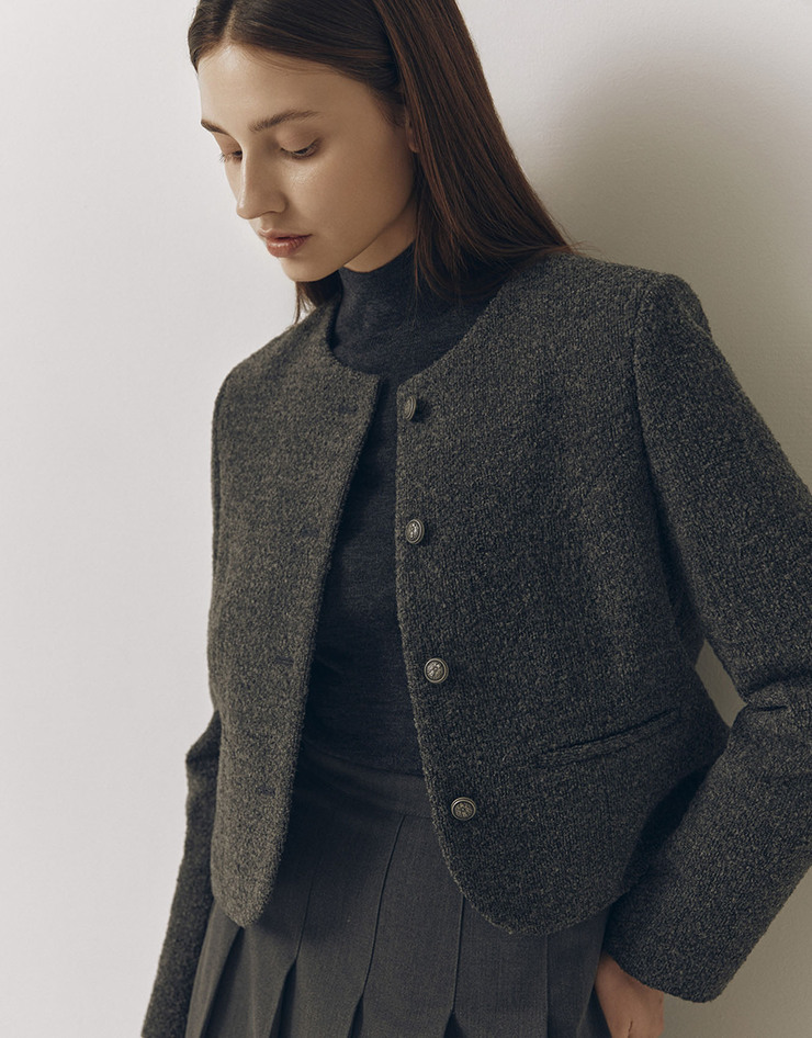 NEW [테일러드] 여자 트위드 세미크롭 자켓