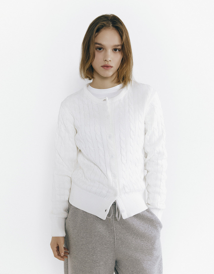 여자 꽈배기 라운드넥 버튼 가디건 5GG