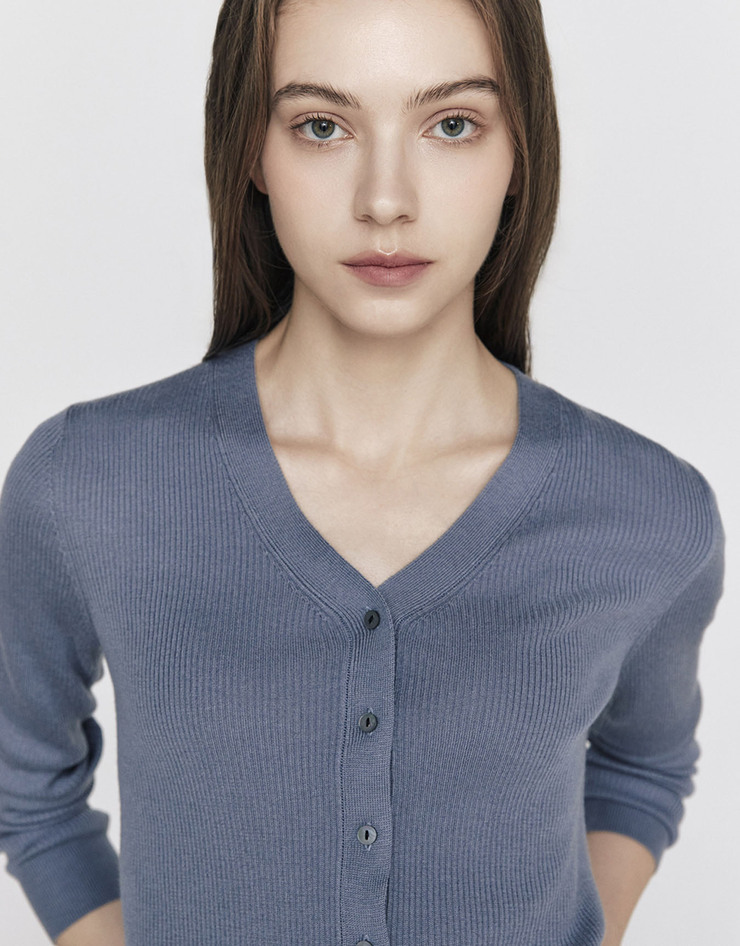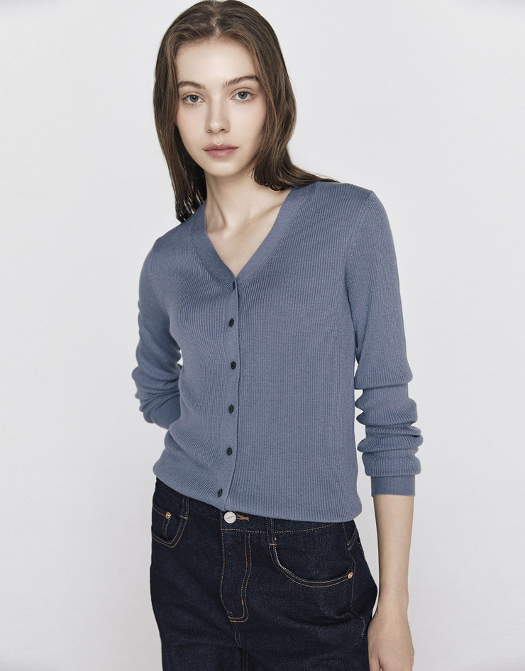 NEW 여자 립 브이넥 긴팔 가디건 14GG