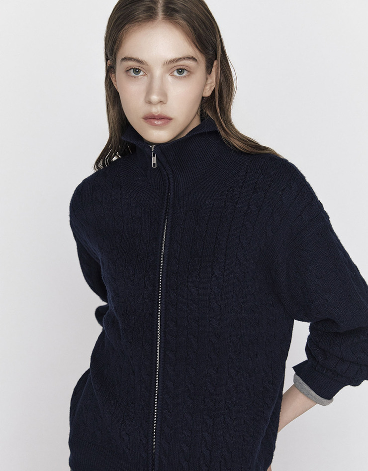 여자 꽈배기 후드 투웨이 집업 가디건 5GG
