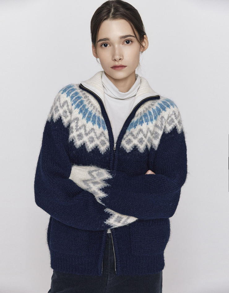 여자 더블 자카드 티핑 투웨이 집업 가디건 12GG