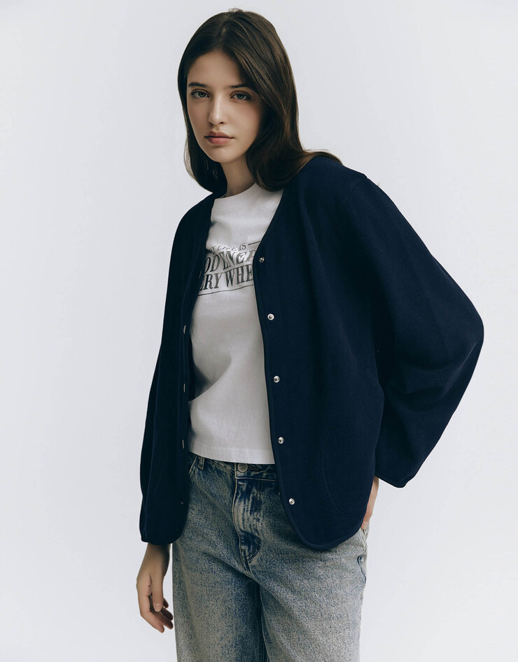 NEW 여자 홈웨어 후리스 스냅 버튼 가디건