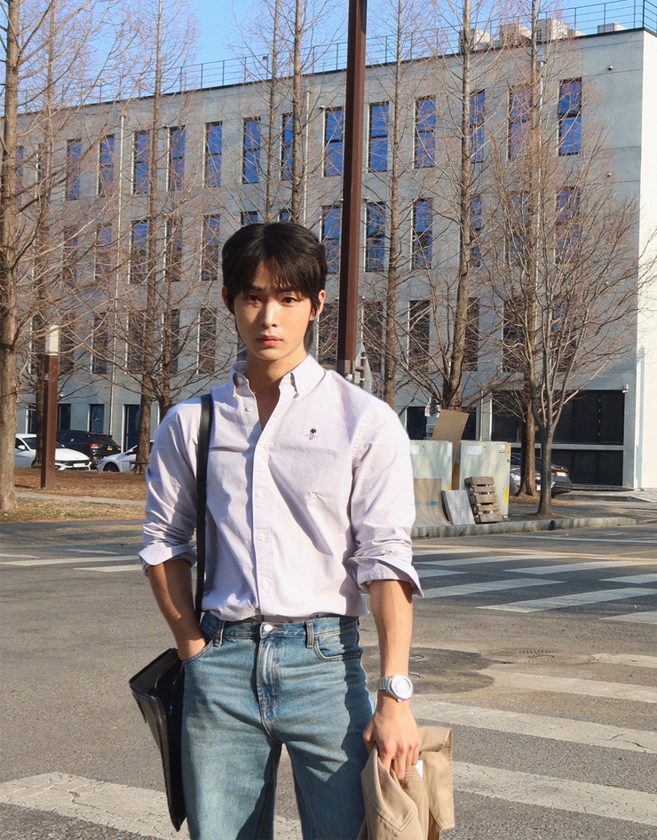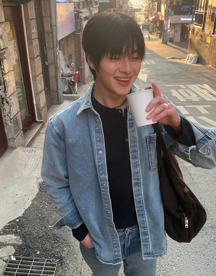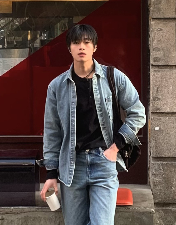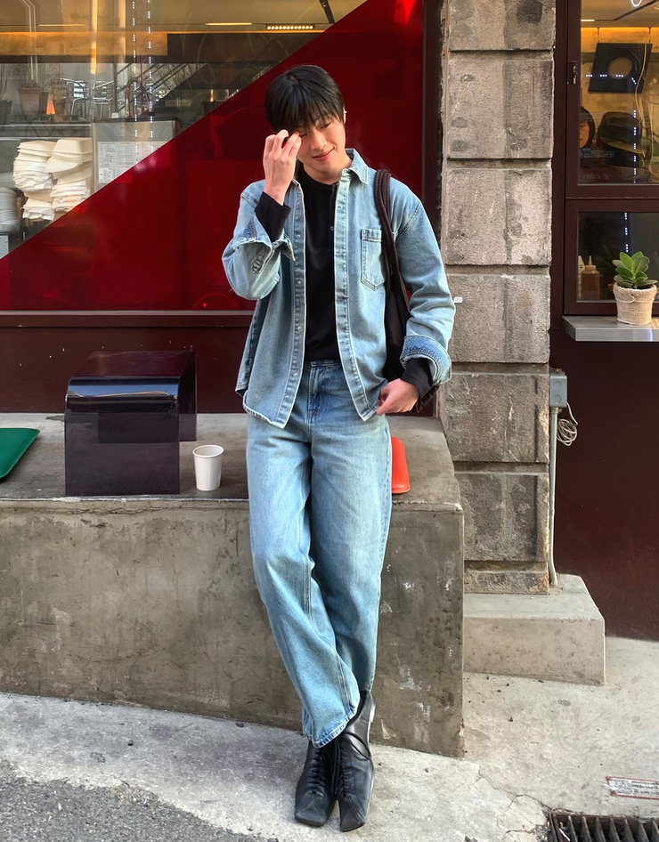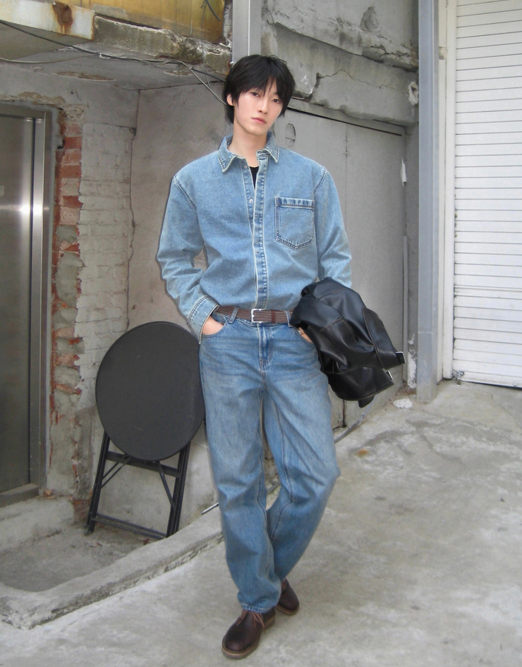 NEW [변우석] 코튼 데님 스냅 셔켓