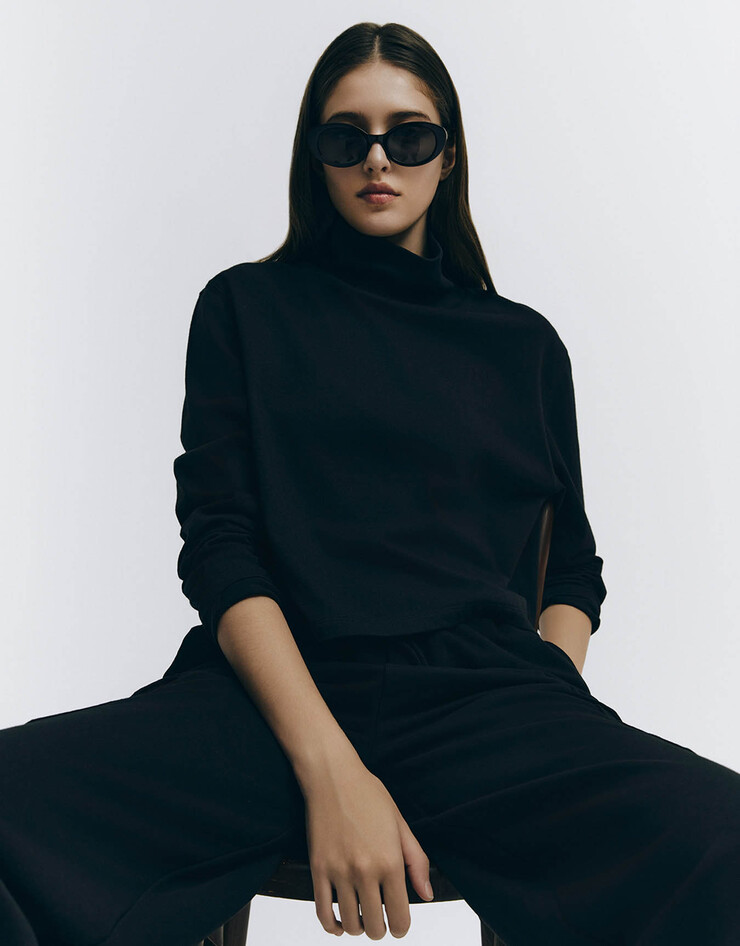 터틀넥 크롭 긴팔 티셔츠