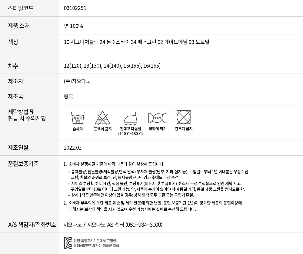 • 교환 진행시 배송비 5,000원 주문자 성함으로 입금 부탁드립니다(신한은행:267-05-028523 (주)지오다노)