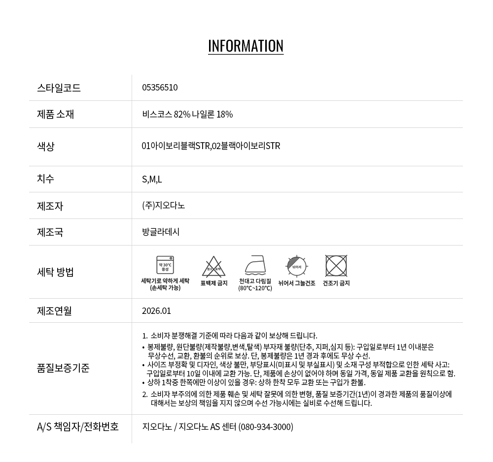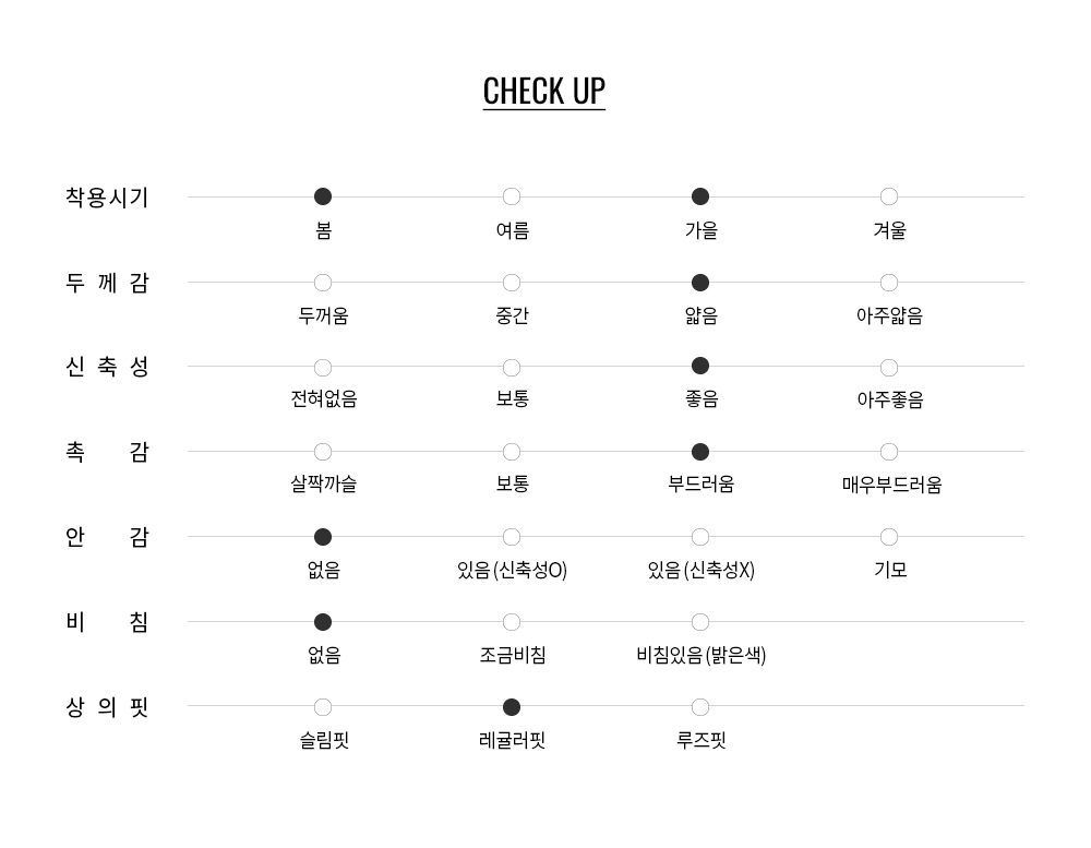 비스코스와 나일론 혼방 소재로 톡톡하고 부드러운 터치감과 적당한 두께감으로 사계절 내내 활용도 높을 제품입니다.