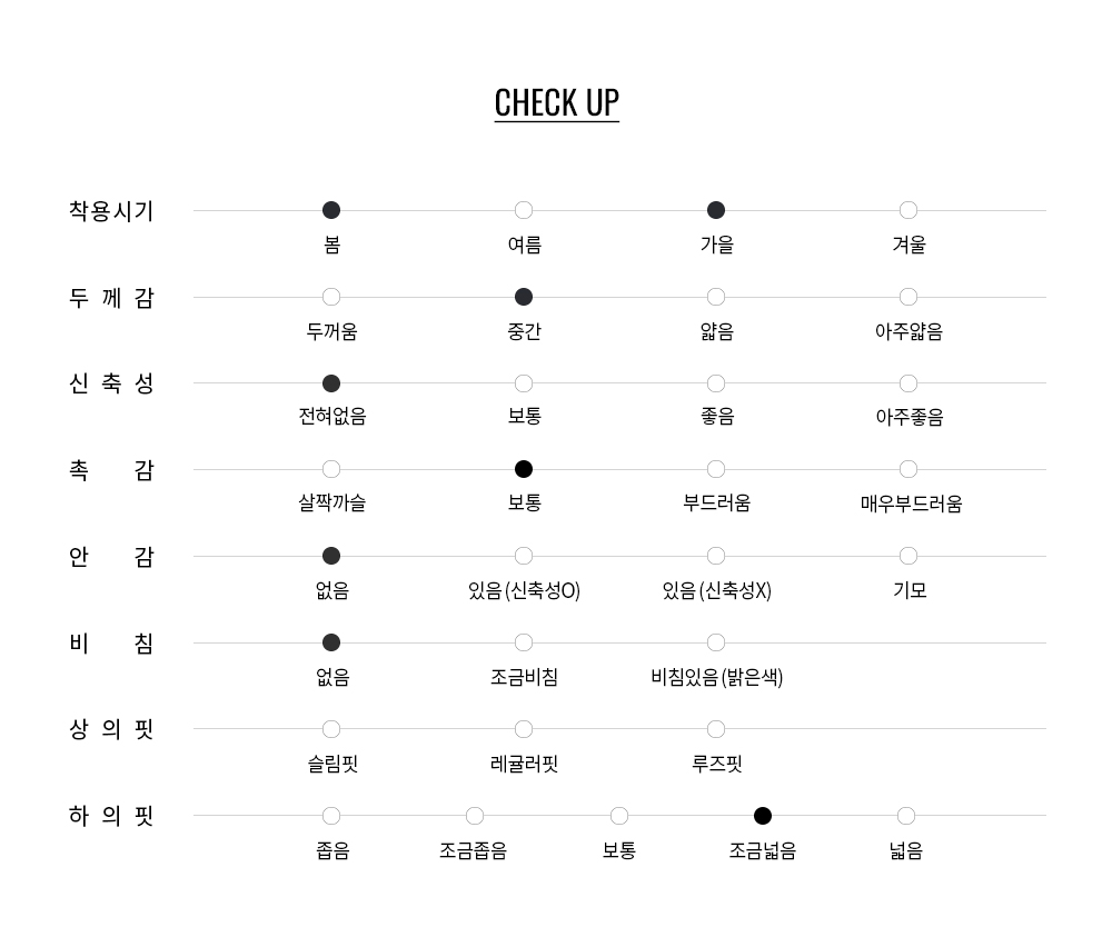 스판이 포함되지 않은 탄탄한 소재감의 기본 데님으로, 13oz 의 적당히 두께감 있는 원단으로 제작되어, 한여름을 제외한 사계절 내내 활용하기 좋은 스타일 입니다.