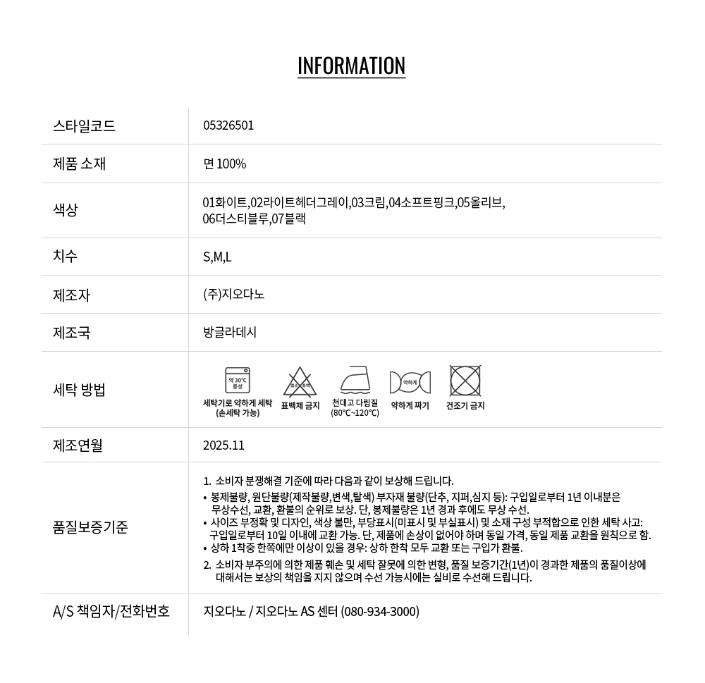 세탁시에도 흐트러짐 없이 오랫동안 입으실 수 있습니다.