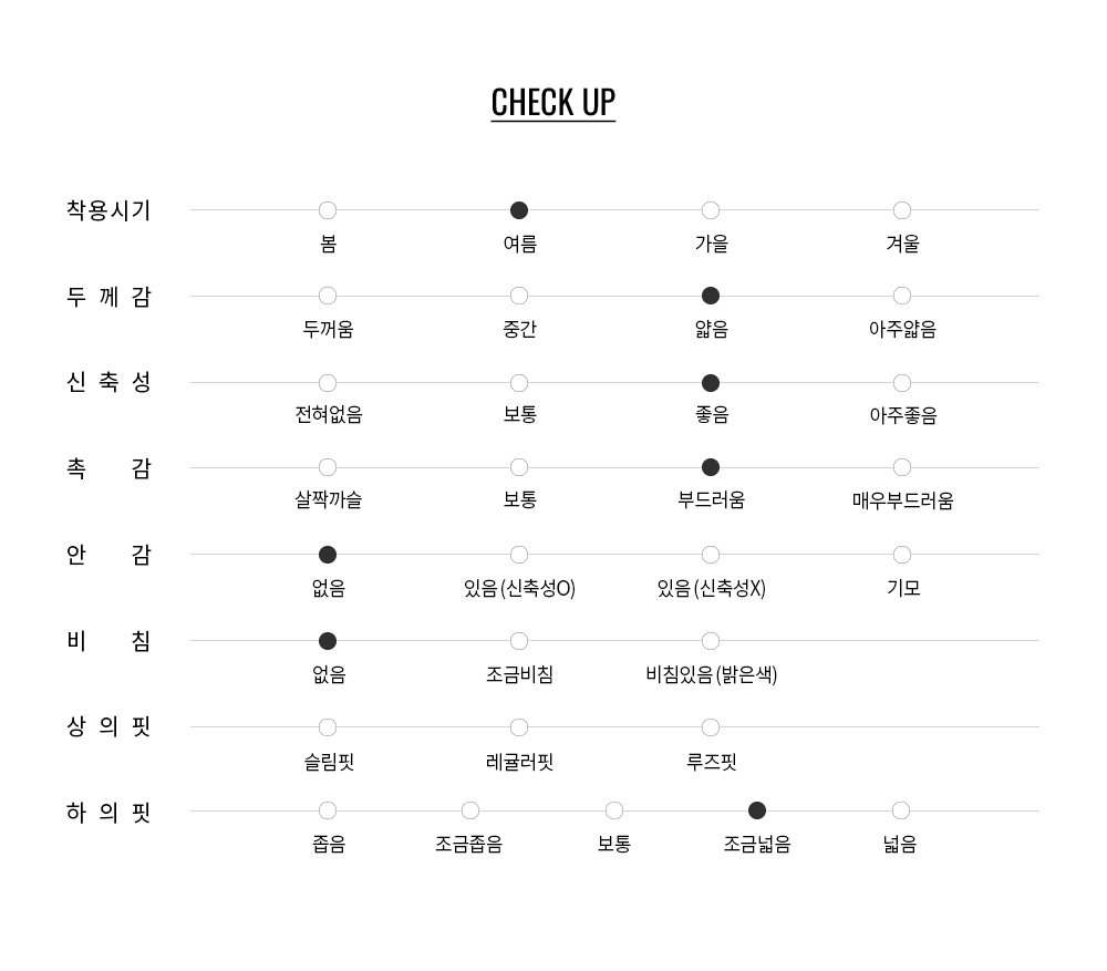 라이트웨이트 원단을 적용하여 가볍고 유연한 착용감으로 일상에서 부담 없이 착용 가능합니다. 구김이 적은 소재 특성으로 관리가 용이하고,