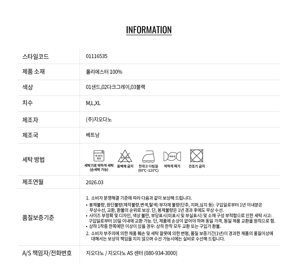• 교환 진행시 배송비 5,000원 주문자 성함으로 입금 부탁드립니다(신한은행:267-05-028523 (주)지오다노)