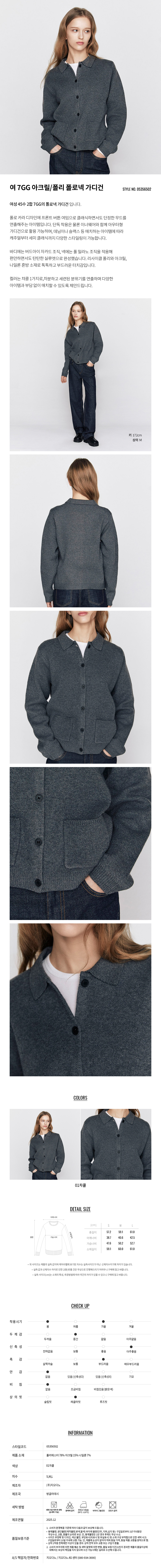 컬러는 챠콜 1가지로,차분하고 세련된 분위기를 연출하며 다양한 아이템과 부담 없이 매치할 수 있도록 제안드립니다.