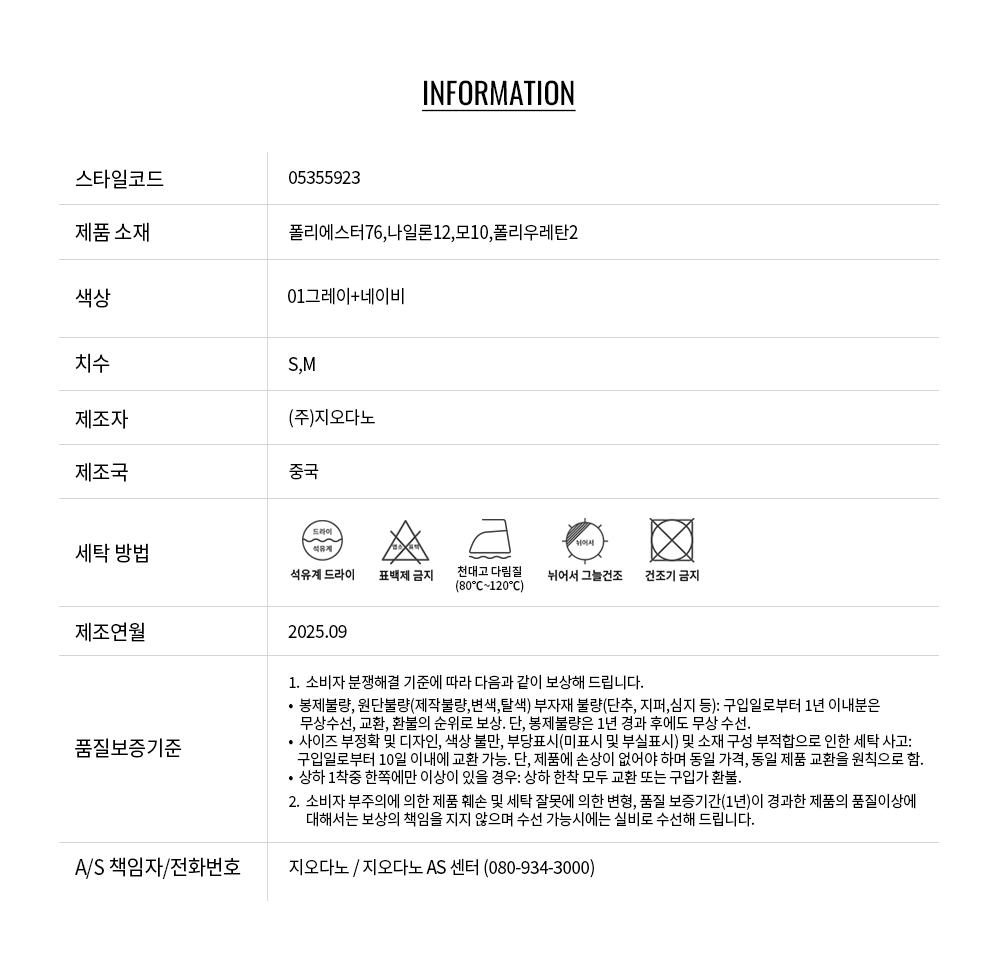 • 교환 진행시 배송비 5,000원 주문자 성함으로 입금 부탁드립니다(신한은행:267-05-028523 (주)지오다노)