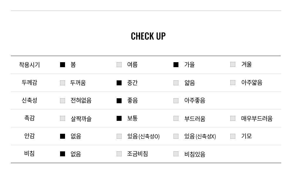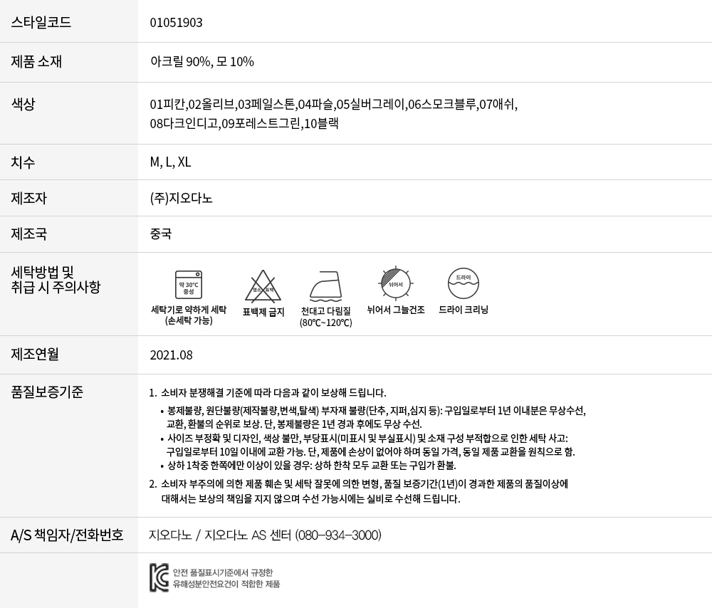 톡톡한 두께감으로 간절기에는 단품으로 착용하기 좋고, 겨울철에는 다양한 아이템과 레이어드하여 데일리 웨어로 활용도가 높은 제품입니다.