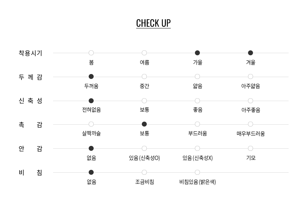 베이직한 솔리드 칼라에 트렌디하고 클래식한 체크 패턴을 더해 선택의 폭을 넓혔습니다.