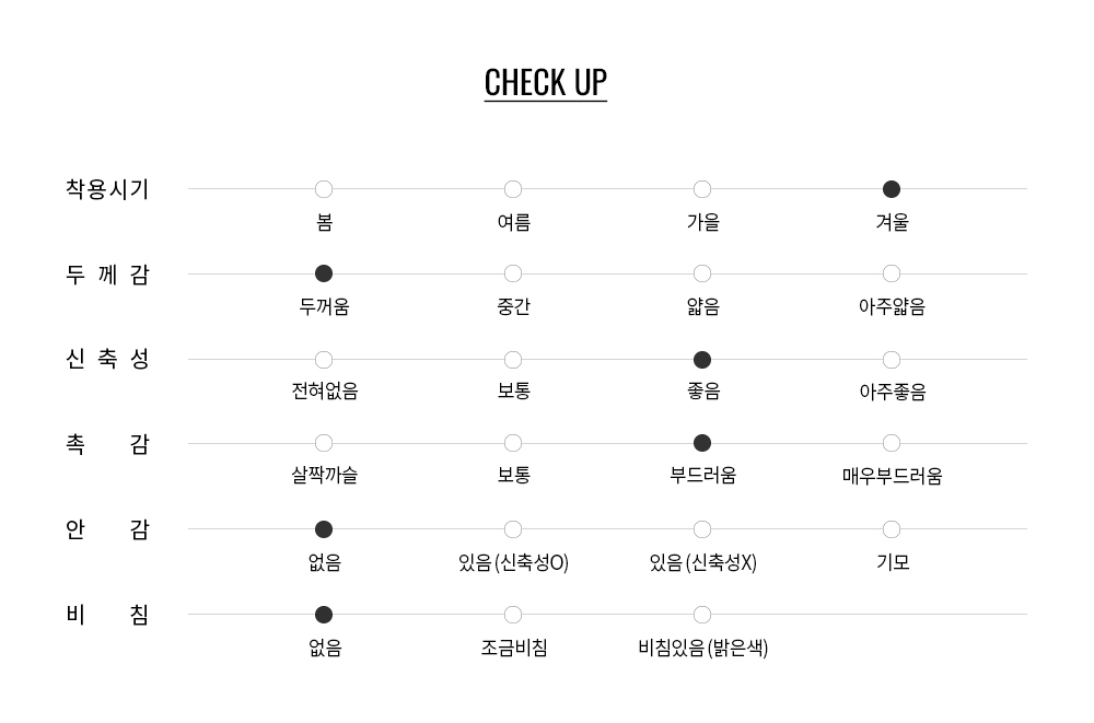겨울 시즌 다양한 상의 아이템들과 연출하기 좋은 데일리 아이템입니다.