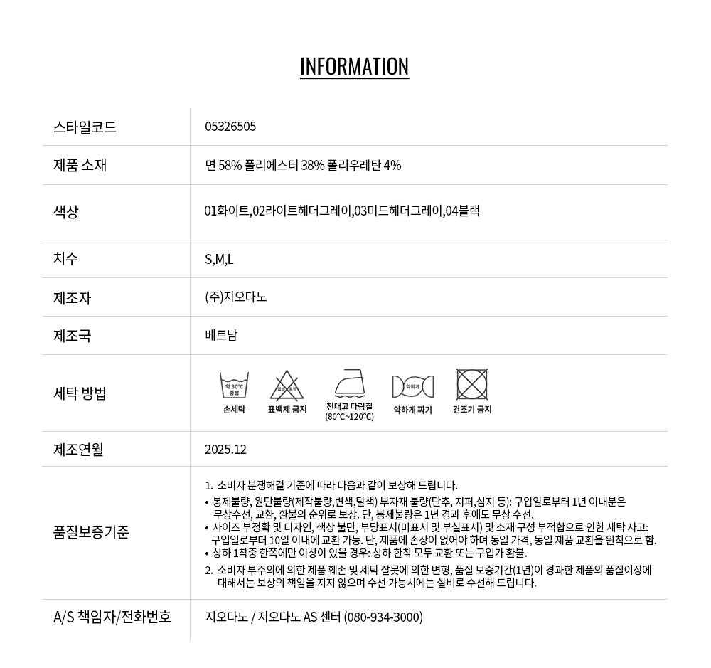 • 교환 진행시 배송비 5,000원 주문자 성함으로 입금 부탁드립니다(신한은행:267-05-028523 (주)지오다노)