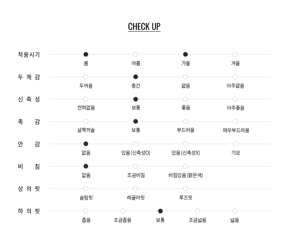 모든 시즌에 활용 가능한 두께감으로 실용적인 아이템 입니다.