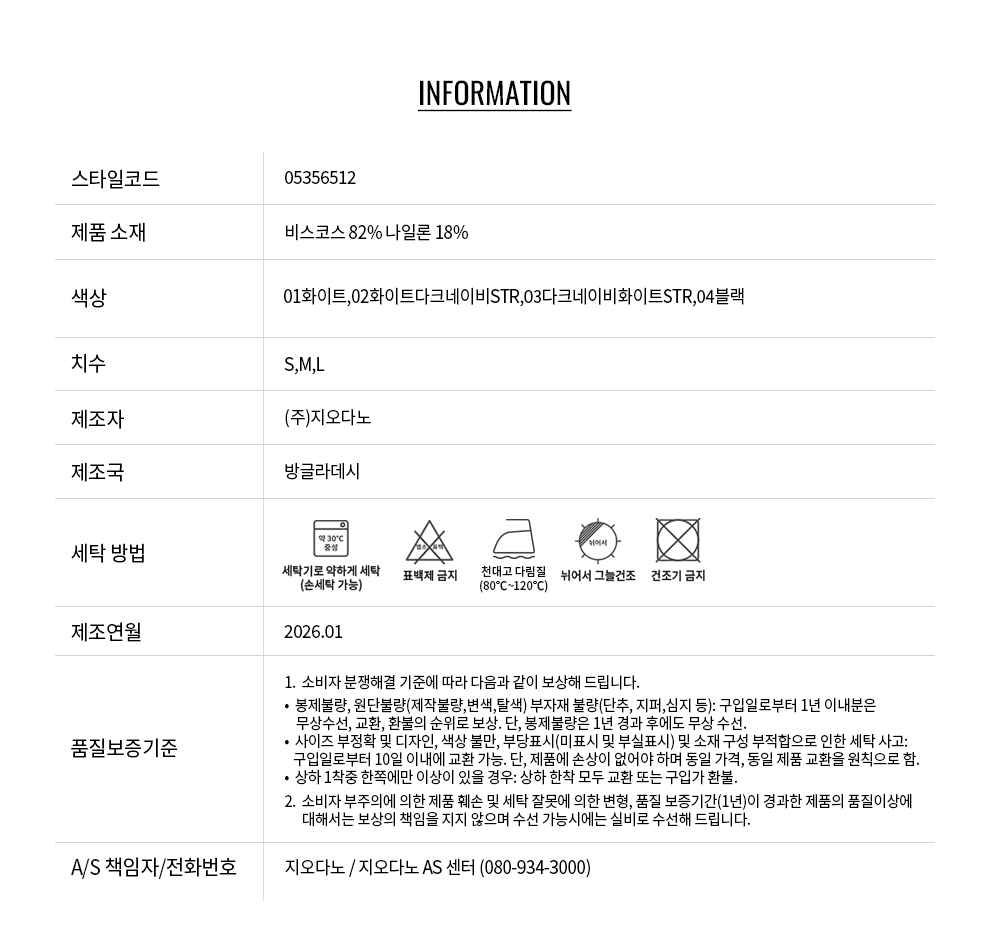 • 교환 진행시 배송비 5,000원 주문자 성함으로 입금 부탁드립니다(신한은행:267-05-028523 (주)지오다노)