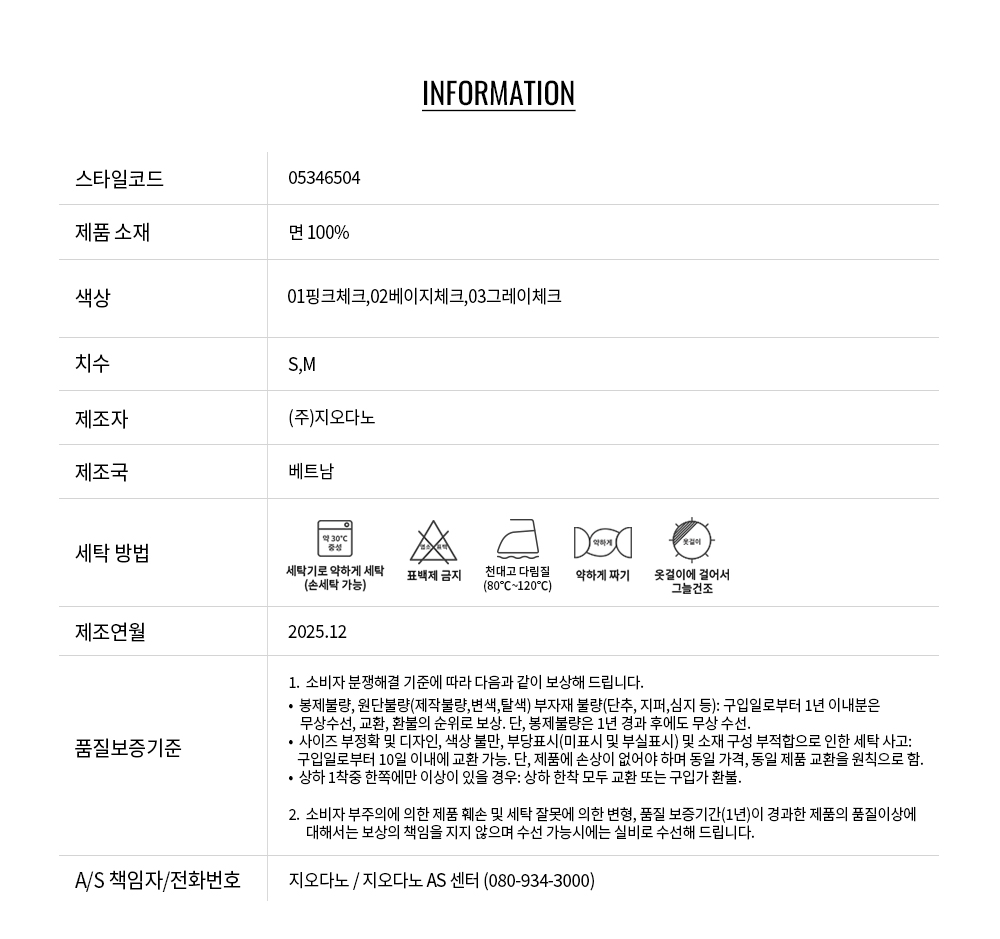 - 교환 진행시 배송비 5,000원 주문자 성함으로 입금 부탁드립니다(신한은행:267-05-028523 (주)지오다노)