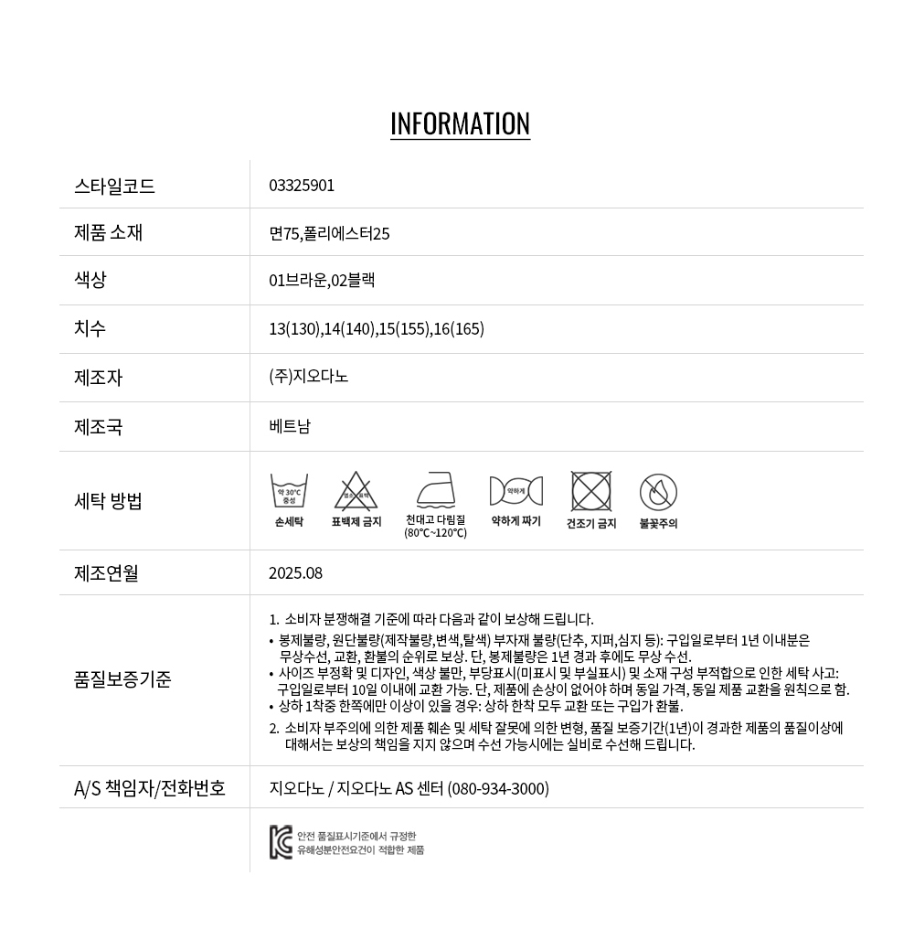 • 교환 진행시 배송비 5,000원 주문자 성함으로 입금 부탁드립니다(신한은행:267-05-028523 (주)지오다노)