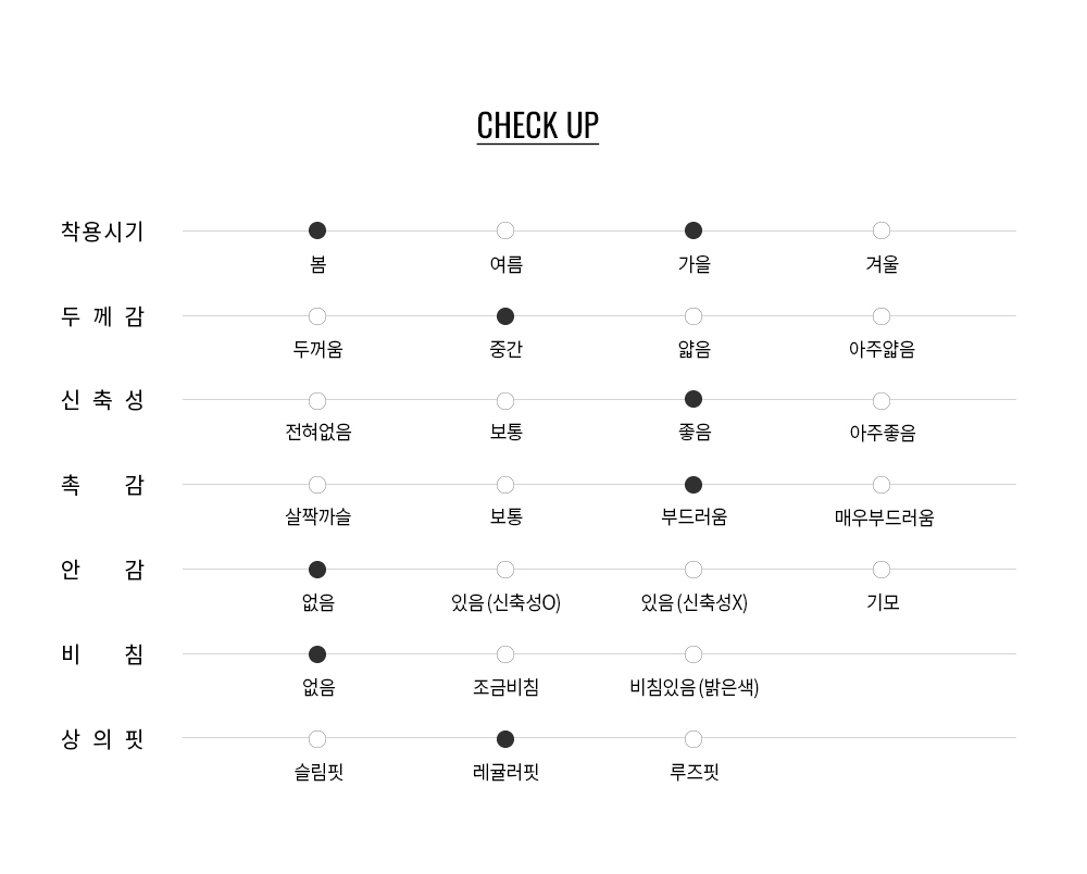 자연스럽게 바디를 따라 흐르는 레귤러 핏에 힙 상단 기장으로 단품 착용은 물론,