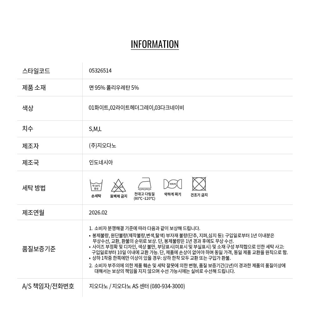 • 교환 진행시 배송비 5,000원 주문자 성함으로 입금 부탁드립니다(신한은행:267-05-028523 (주)지오다노)