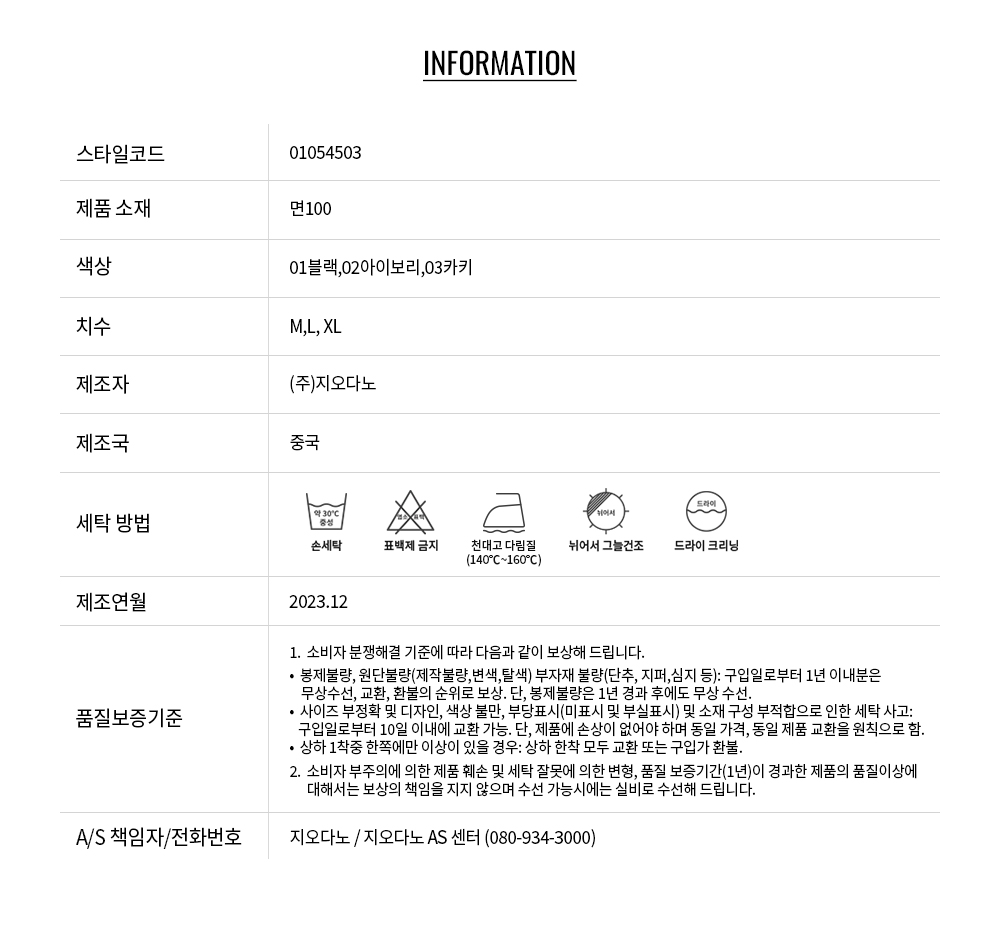 • 교환 진행시 배송비 5,000원 주문자 성함으로 입금 부탁드립니다(신한은행:267-05-028523 (주)지오다노)