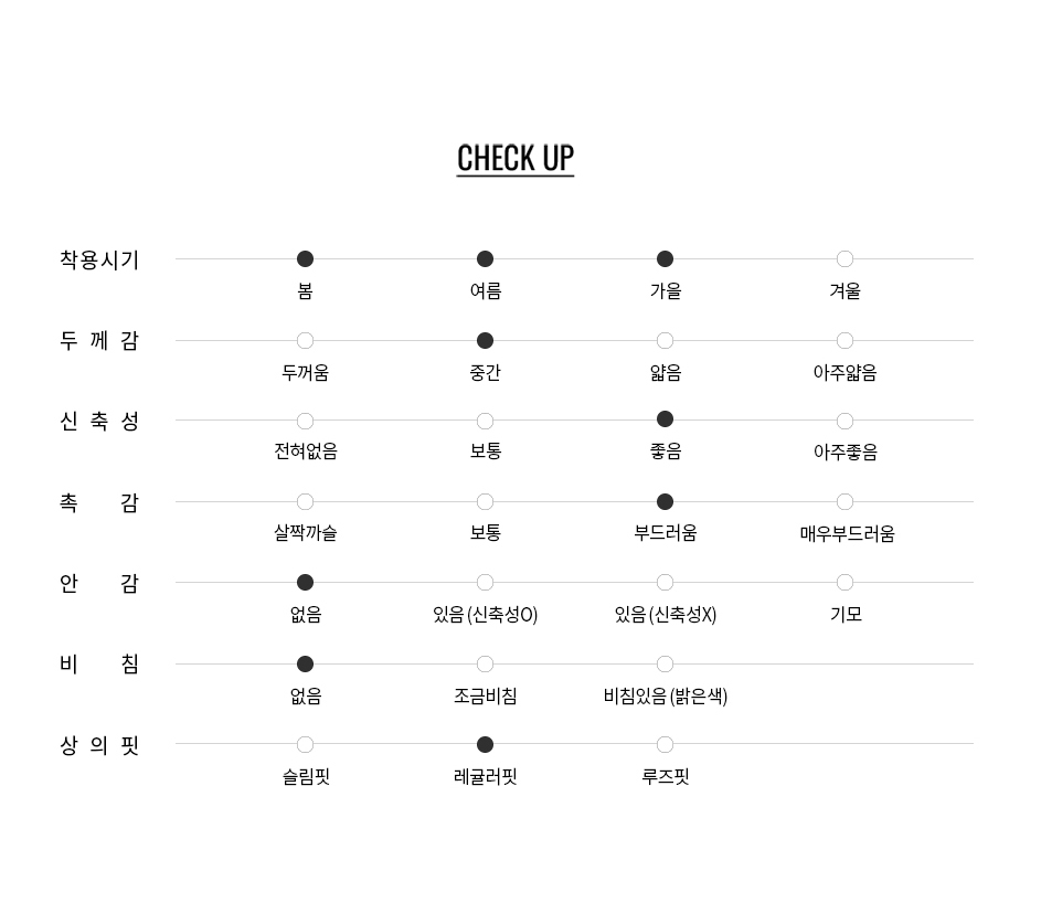 약 150gsm의 적당한 두께감으로 단독은 물론 이너로도 활용하기 좋고,
