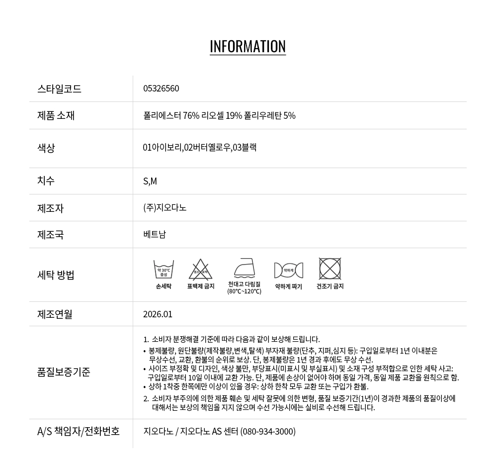 - 교환 진행시 배송비 5,000원 주문자 성함으로 입금 부탁드립니다(신한은행:267-05-028523 (주)지오다노)