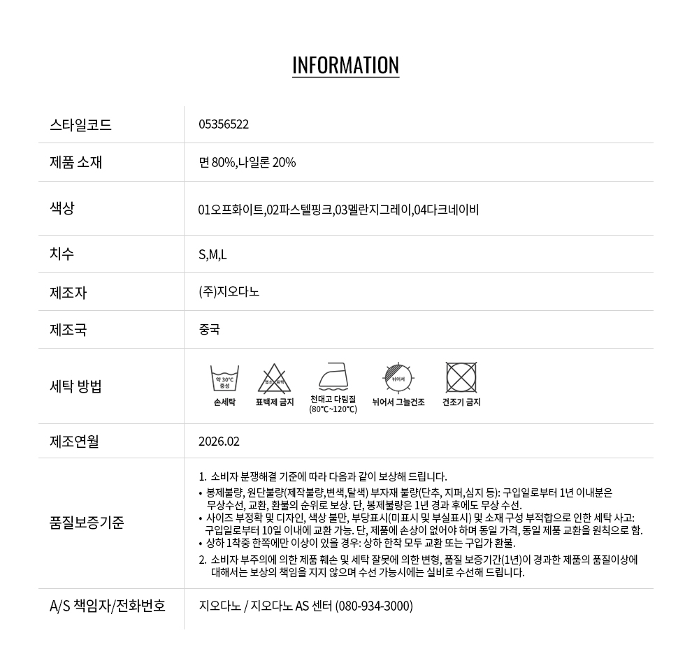 • 교환 진행시 배송비 5,000원 주문자 성함으로 입금 부탁드립니다(신한은행:267-05-028523 (주)지오다노)