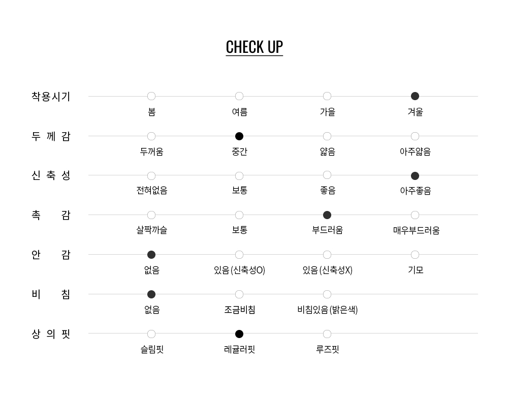 도톰한 두께감으로 FW시즌 따뜻하고 스타일리쉬하게 연출하실 수 있습니다.
