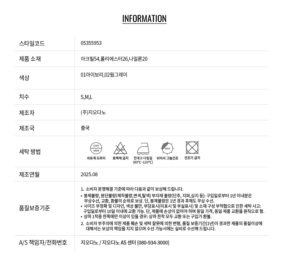 • 교환 진행시 배송비 5,000원 주문자 성함으로 입금 부탁드립니다(신한은행:267-05-028523 (주)지오다노)