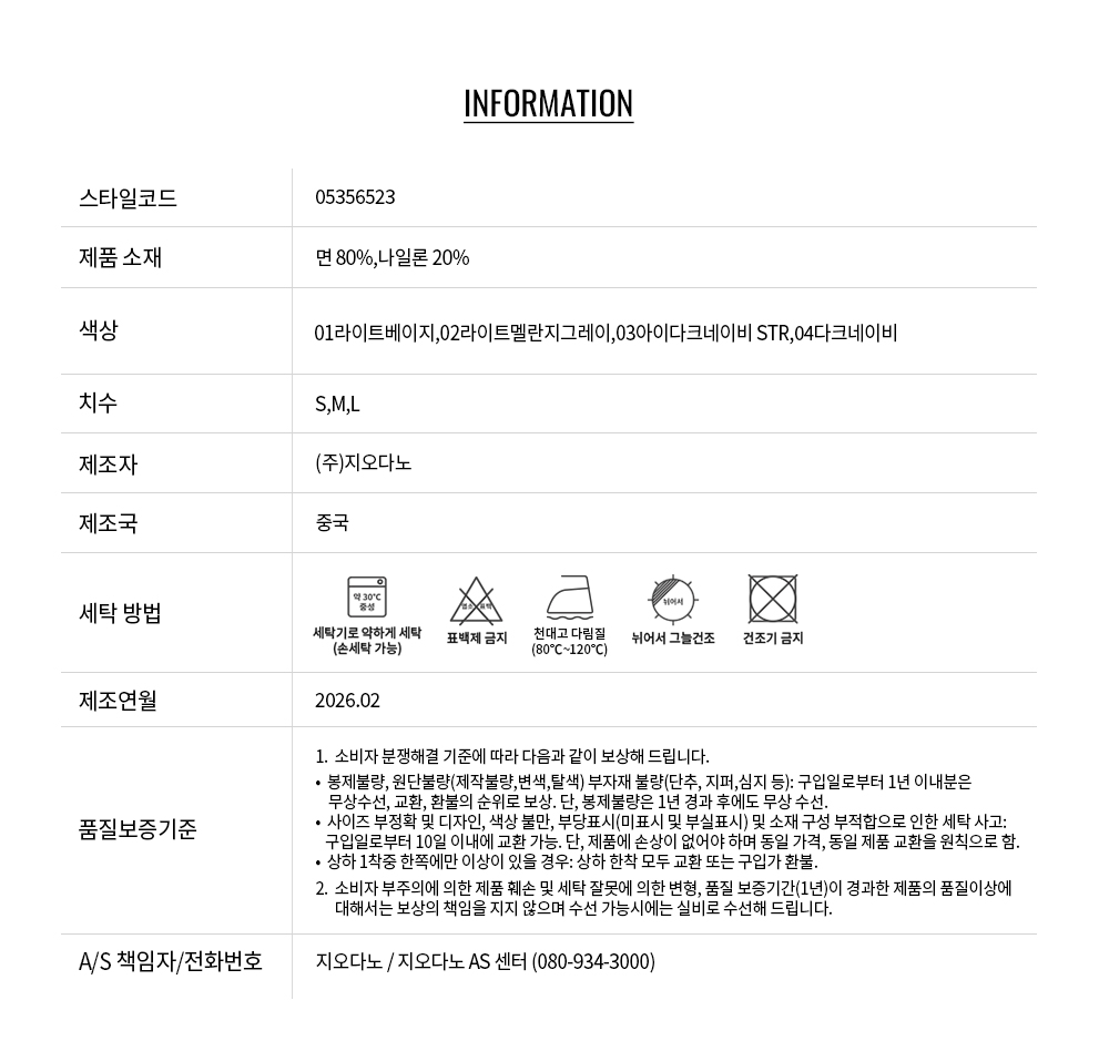 - 교환 진행시 배송비 5,000원 주문자 성함으로 입금 부탁드립니다(신한은행:267-05-028523 (주)지오다노)