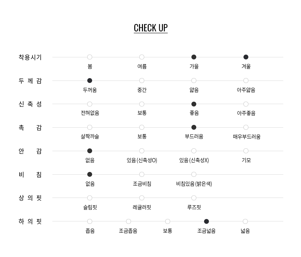 프리미엄 가공을 통해 소프트하면서 고급스러운 캐시미어 터치감을 구현했습니다.