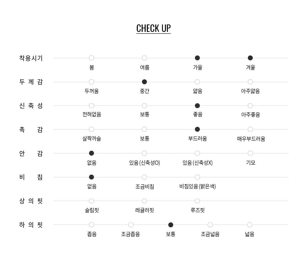 프리미엄 가공을 통해 소프트하면서 고급스러운 캐시미어 터치감을 구현했습니다.